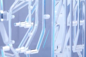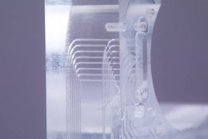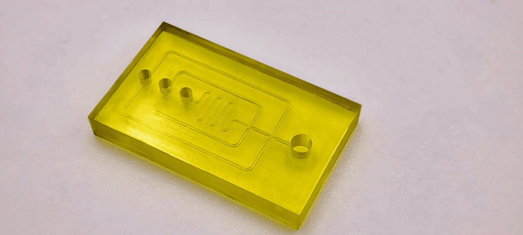 Diffusion bonding at IPFL involves a carefully controlled process where acrylic, COC, and Ultem polymers are fused at a molecular level under specific temperature and pressure conditions. This technique is particularly beneficial in the fabrication of complex microfluidic systems where traditional bonding methods might compromise channel integrity or cause contamination. Our diffusion bonding capabilities enable the production of clearer, cleaner, and more durable interfaces, essential for the precise control of fluid flows in applications such as lab-on-a-chip and organ-on-a-chip technologies.